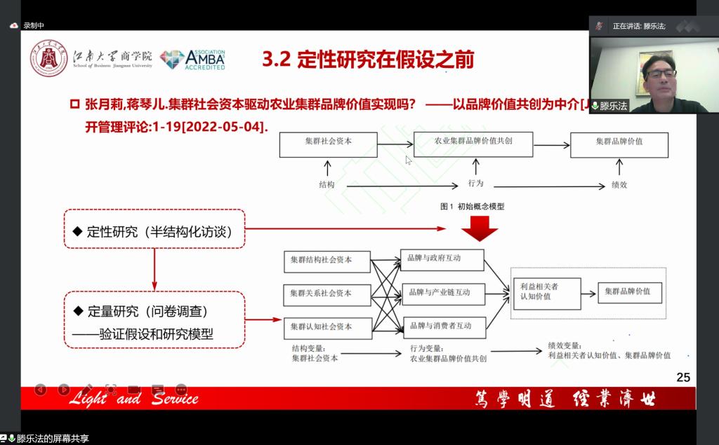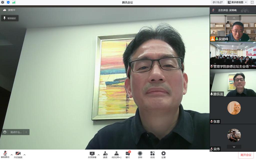 5月12日下午,江南大学质量品牌研究院执行院长滕乐法教授受伟德官网邀请进行线上讲座,拟通过本次讲座为伟德官网研究生在论文研究方法及应用提供帮助与指导。本次讲座由伟德国际1946源于英国副院长吴锦峰教授主持,伟德国际1946源于英国部分教师出席,全体研究生积极参会。