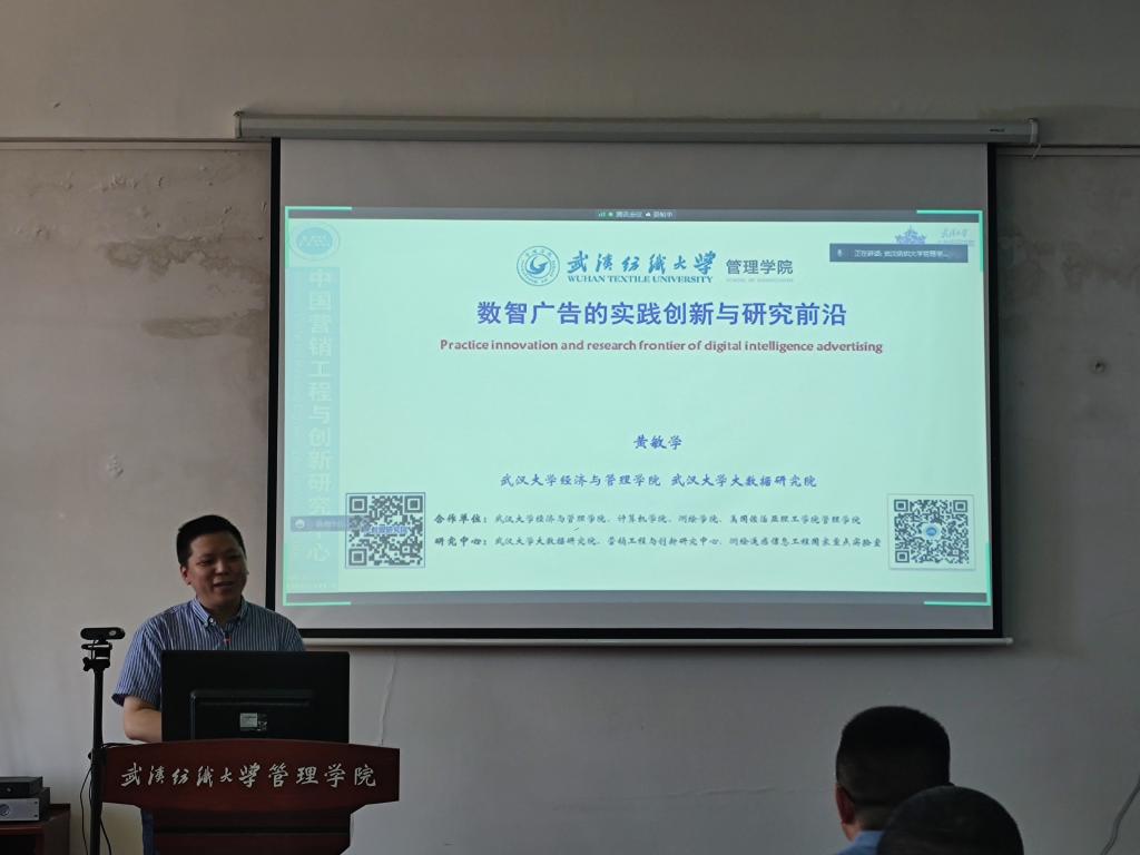 6月16日下午,武汉大学经济与伟德国际1946源于英国副院长黄敏学教授受伟德官网邀请来校讲座,拟通过本次讲座为伟德官网研究生分享数智广告的实践创新与研究前沿。本次讲座由伟德国际1946源于英国副院长吴锦峰教授主持,伟德国际1946源于英国部分教师出席,全体研究生积极参会。