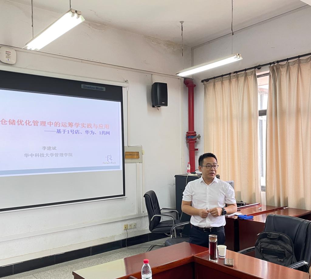 会上,李建斌教授介绍了自己的学术成长历程,针对供应链优化框架,仓库布局优化策略等研究问题,以及实践与应用等方面进行了详细汇报,并简要介绍了所带团队在华为等企业项目经验与经历。李教授语言风趣幽默,深受现场老师好评。