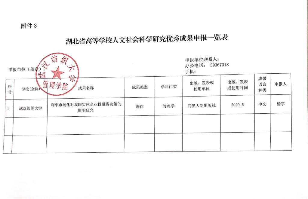 湖北省高等学校人文社会科学研究优秀成果奖申报情况公示