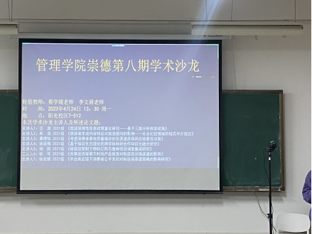 伟德国际1946源于英国于4月24日在阳光校区举办了第八期“崇德”学术沙龙,给广大学术旅途上的学子催生新的学习想法,积攒科研知识。本次学术沙龙在07-512进行,共有7位同学对自己的研究近况进行展示。学院特邀蔡学媛老师和李文莉老师参与主持此次论坛并发表点评。