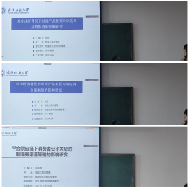 第六位是来自21级物流的张可同学,她对论文《共享经济背景下时尚产品租赁对制造商分销渠道的影响》进行展示,本文针对由单一时尚产品制造商和实体零售商组成的二级供应链系统,在Stackelberg博弈下研究无租赁模式的供应链定价决策。最后一位分享论文的是来自21级物流的张兆媛同学,介绍她的论文《平台供应链下消费者公平关切对制造商渠道策略的影响研究》,文章在平台供应链中 考虑消费者的公平关切行为,研究了制造商的渠道策略。