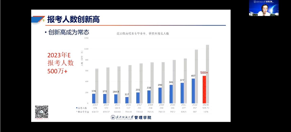 7月26日晚8点,伟德国际1946源于英国杨筝博士利用线上会议为安阳师范学院的同学进行了考研报考动员会与考研宣讲会。杨筝博士针对性的讲解了最近几年的考研情况,为同学们分析了报考以及录取人数情况,针对安阳师范学院的学生们强调需要平稳心态,在报考专业冷热不均的前提下,科学进行院校专业选择,把握好自身优势。最后将大家提出的问题进行系统性的解答,并针对一些备考误区给出意见。