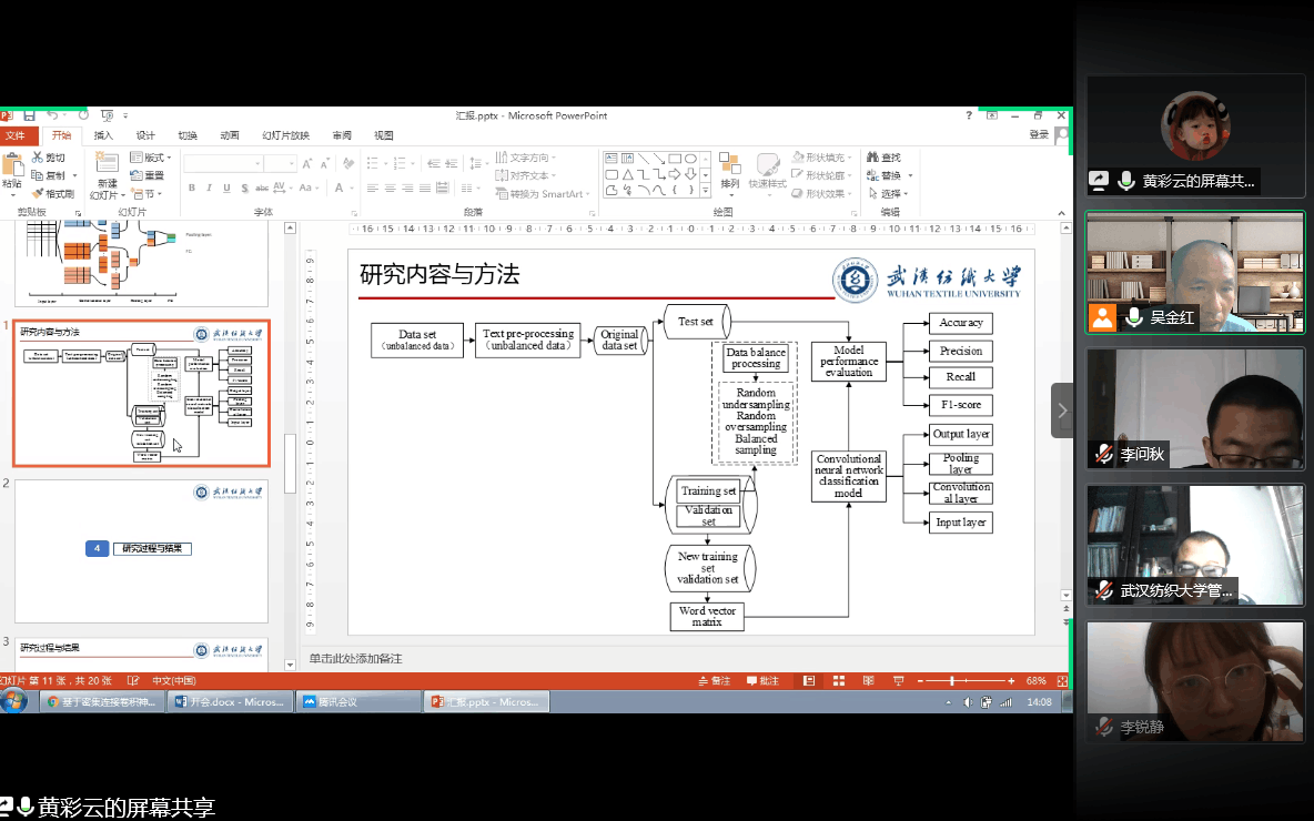 导师研究研讨会和以往线下研讨会一样定期召开,导师们听取学生们的近期学习与研究进展,并展开激烈的讨论与分享。通过周密部署,目前伟德官网稳步推进疫情期间师生在线教学、在线指导、在线研讨、在线毕业答辩等工作,实现了“停课不停教、停课不停学”,保障了人才培养质量。