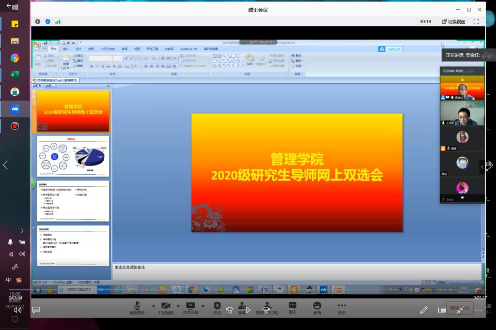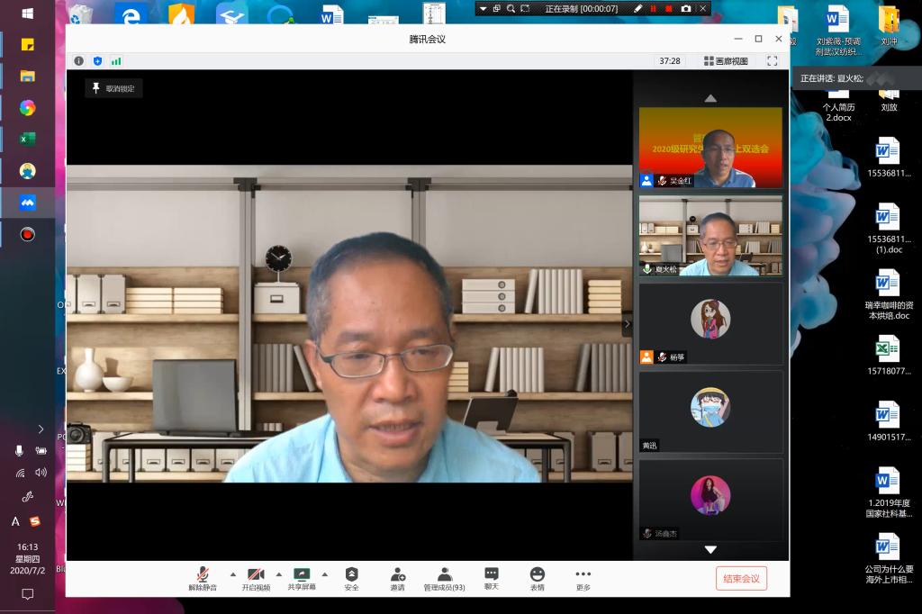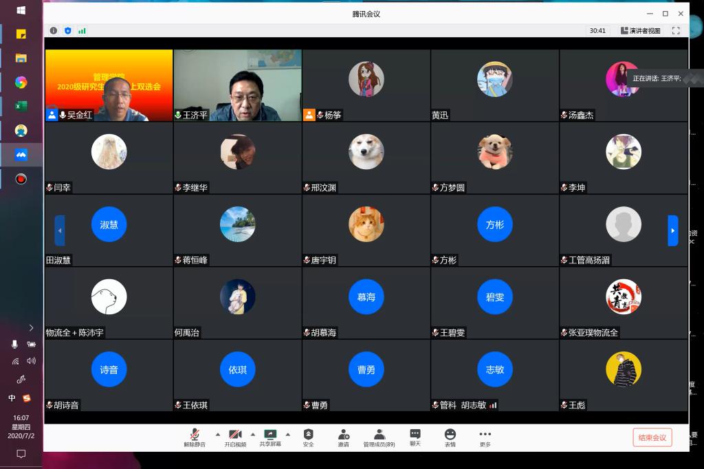 2020年7月2日下午,伟德国际1946源于英国在腾讯会议平台上举行了2020级研究生导师见面会。学院领导王济平院长、副院长吴金红、吴锦峰、张飞,20余名研究生导师和70名2020级研究生新生参加了会议。会议由分管研究生工作的吴金红副院长主持。吴金红副院长向同学们介绍了见面会的具体流程,导师双选的具体要求。