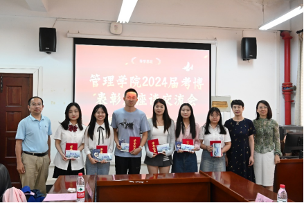 最后,学院领导为“申博标兵”颁发证书与纪念品。吴金红向考博成功的学子表示祝贺,希望他们能在属于自己的博学之路上砥砺前行,成为学术界的新星。他指出,今年能够有如此优异的考博成绩,离不开导师们的辛勤指导,也说明了研究生培养质量正在稳步提高。他希望在校研究生能够以“申博标兵”为榜样,潜心科研,勤奋笃实、奋发向上,更多学子踏上考博征途。